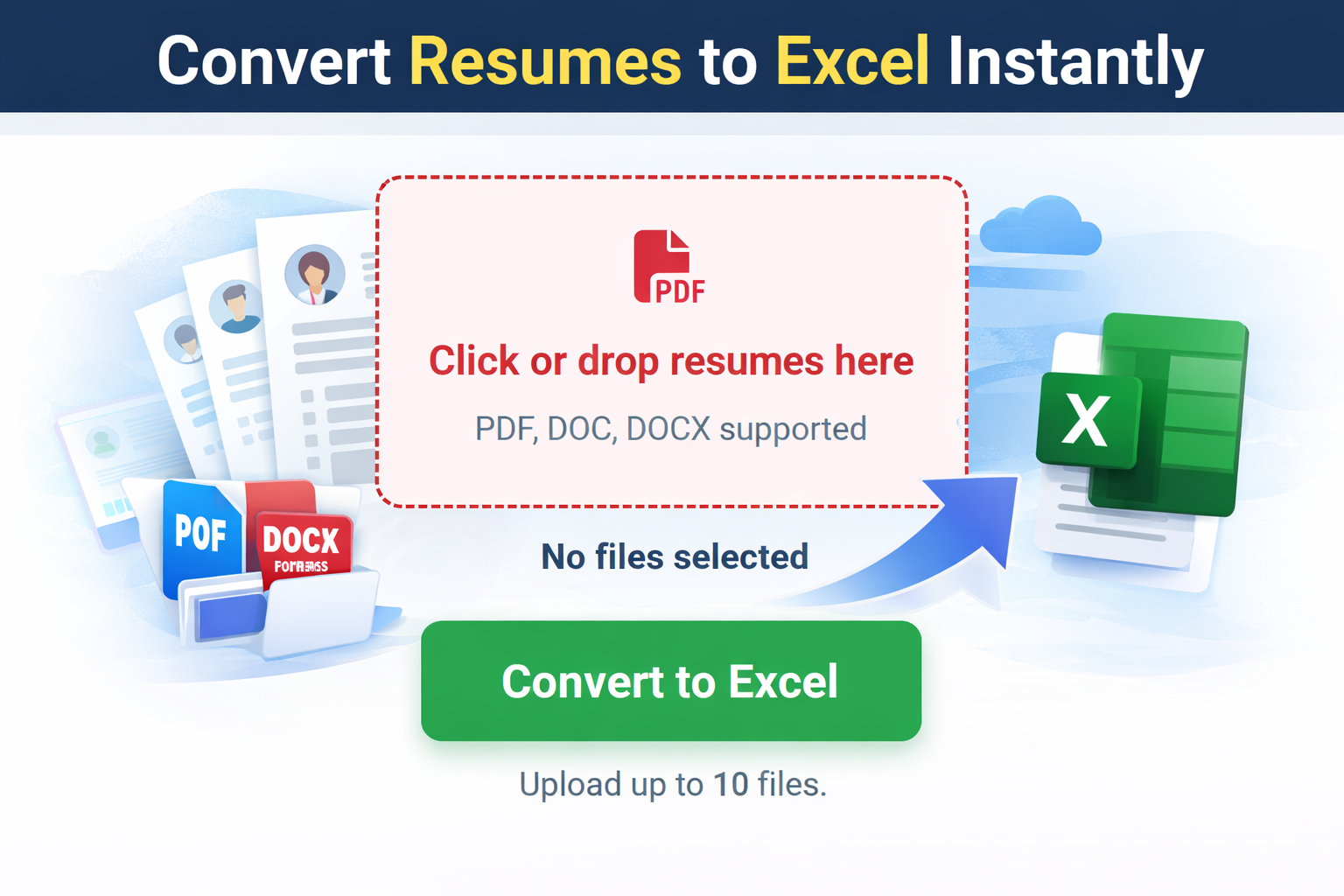 Save hours of manual work. Upload resumes, extract structured data, and export to Excel in seconds.